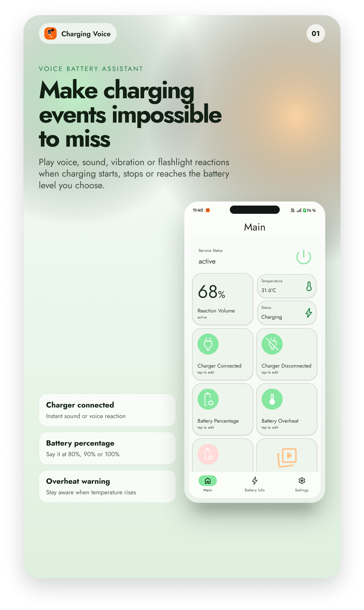 🎯 Key Features of Battery Charge Voice