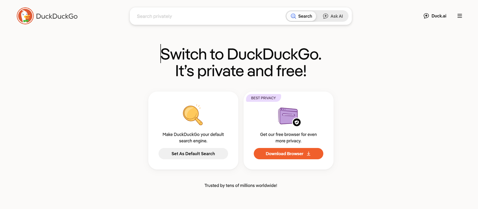 DuckDuckGo is a powerful search engine designed for users who care about privacy. It provides a safe and simple way to search the internet without being tracked. While it may not be as advanced as some competitors, its privacy-first approach makes it a great choice for many people. If you want to browse the web without worrying about your data, DuckDuckGo is definitely worth trying. In today’s digital world, protecting your personal information is very important—and DuckDuckGo helps you do exactly that.